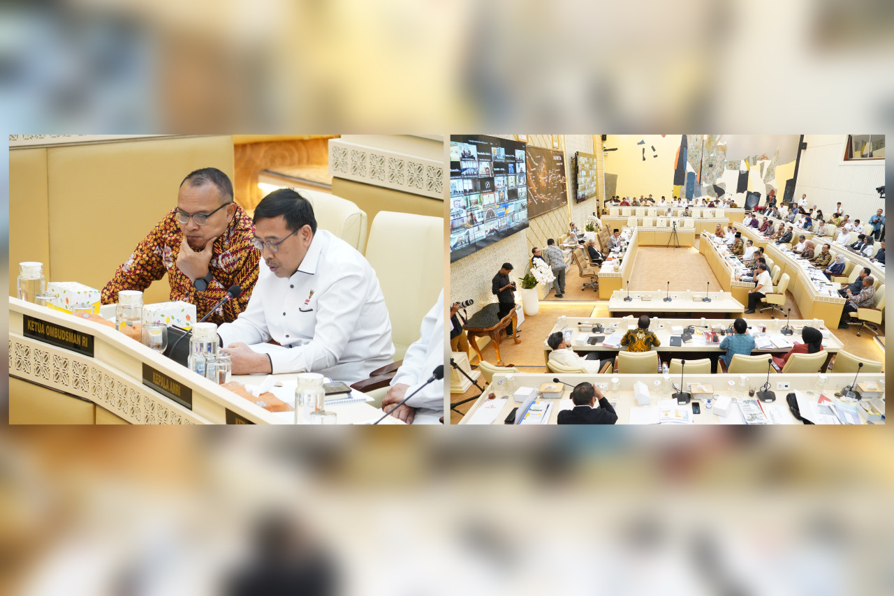 Ketua Ombudsman RI, Mokhammad Najih bersama Anggota Robert Na Endi Jaweng, Dadan S Suharmawijaya dan Sekretaris Jenderal Suganda Pandapotan Pasaribu menghadiri Rapat Dengar Pendapat (RDP) dengan Komisi II DPR RI bersama Kementerian ATR/BPN, Dewan Kehormatan Penyelenggara Pemilu (DKPP), KPU, Bawaslu, LAN, dan ANRI terkait Evaluasi dan Proyeksi Program Kerja Kementerian/Lembaga Tahun 2025, pada Senin (24/11/2025) di Gedung Nusantara II DPR RI, Jakarta Pusat.