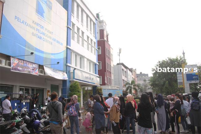 Puluhan warga mendatangi kantor pusat pelayanan pelanggan air minum Batamcenter, Kamis (12/1/2023)