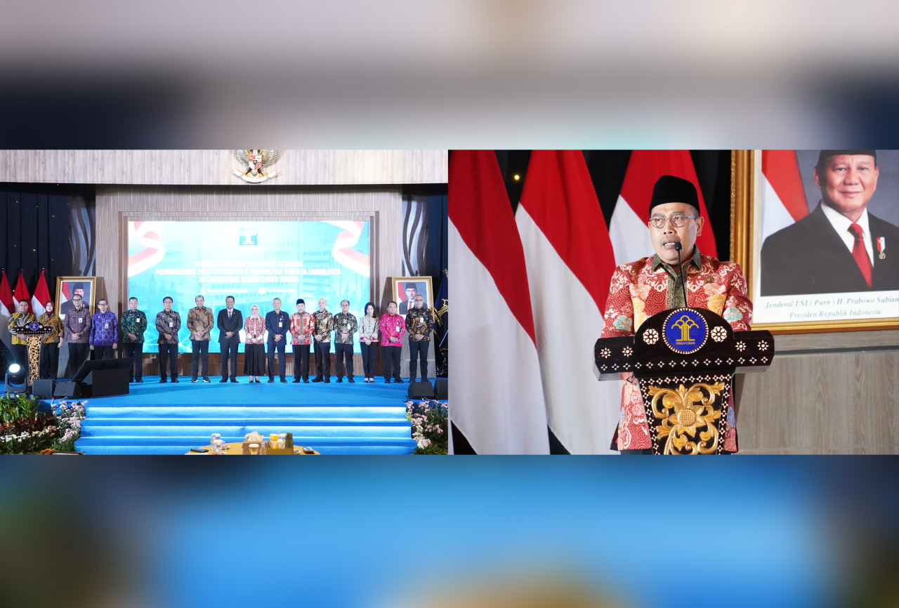 Ketua Ombudsman RI, Mokhammad Najih menyampaikan arahan dalam Penandatanganan Komitmen Bersama Pembangunan Zona Integritas dan Perjanjian Kinerja Kementerian Hukum Tahun 2026, pada Kamis (8/1/2026) di Graha Pengayoman Kementerian Hukum RI. Turut Hadir Menteri Hukum Supratman Andi Agtas dan Wakil Menteri Edward Omar Sharif Hiariej, Menteri PAN RB Rini Widyantini, dan Wakil Ketua KPK Ibnu Basuki Widodo.