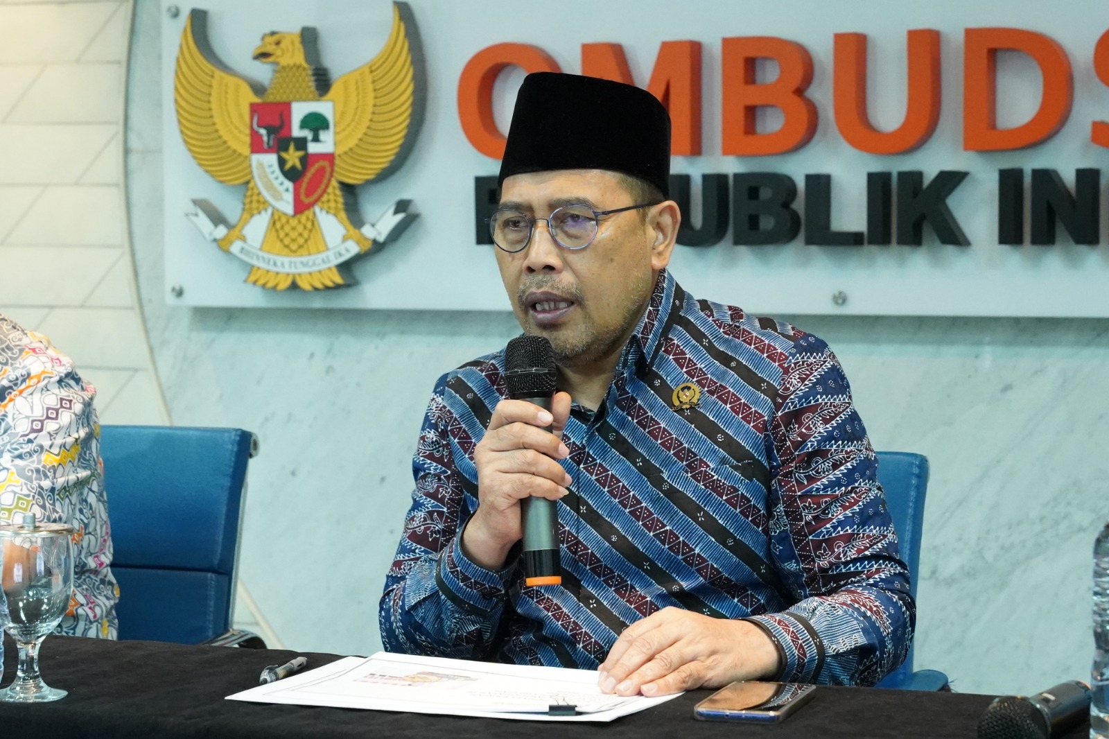 Ketua Ombudsman RI, Mokhammad Najih dalam Konferensi Pers Penyampaian Hasil Penyelesaian Laporan Masyarakat Tahap Resolusi dan Monitoring Tahun 2025 secara daring, pada Selasa (13/1/2026) di Gedung Ombudsman RI, Jakarta Selatan.