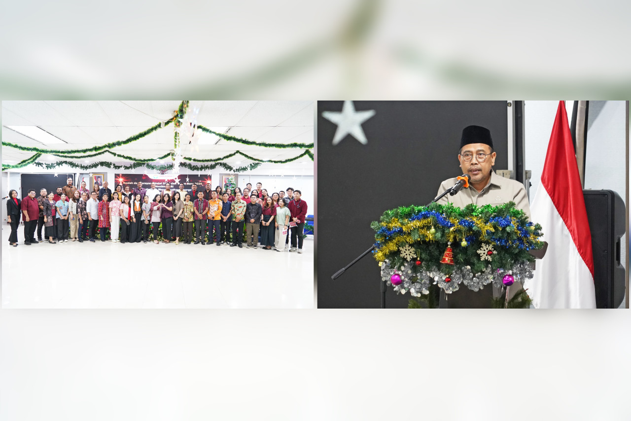 Ketua Ombudsman RI, Mokhammad Najih saat menyampaikan sambutan pada Perayaan Natal 2025 dan Tahun Baru 2026 di Gedung Ombudsman RI, Jakarta Selatan, Kamis (15/1/2026).
