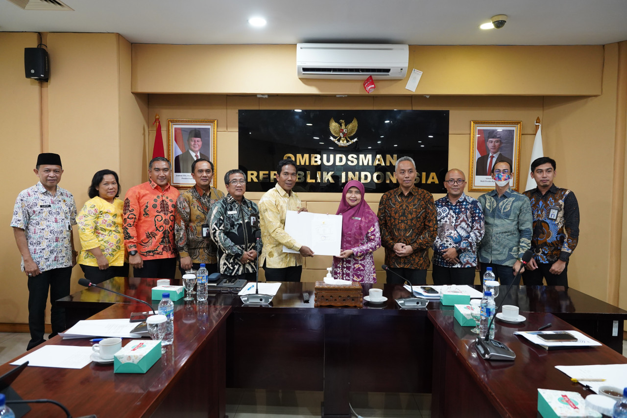 Wakil Ketua Ombudsman RI, Bobby Hamzar Rafinus bersama Anggota Johanes Widijantoro, Jemsly Hutabarat, Dadan S. Suharmawijaya, dan Indraza Marzuki Rais menerima kunjungan kerja Danish Parliamentary Ombudsman oleh Director of International Relations dan Committee for the Prevention of Torture and Inhuman or Degrading Treatment or Punishment (CPT), Klavs Kinnerup Hede dan Head of Information, Records Office and Communications, Karen Nedergaard, pada Senin (19/1/2026) di Gedung Ombudsman RI, Jakarta Selatan.