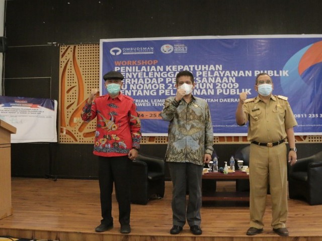 Palu - Anggota Ombudsman Ri Jemsly Hutabarat membuka Workshop Penilaian Kepatuhan Penyelenggara Pelayanan Publik Terhadap Pelaksanaan UU No 25 Tahun 2009 Tentang Pelayanan Publik sekaligus penandatanganan Komitmen Bersama Penyelenggaraan Pelayanan Publik Sesuai Amanat UU Nomor 25 Tahun 2009 yang dihadiri oleh Pj. Sekretaris Daerah Provinsi Sulawesi Tengah Mulyono,SE,Ak,MM, Kepala Perwakilan Ombudsman RI Sulawesi Tengan H. Sofyan Farid Lembah, SH pada hari Senin sampai hari Selasa (24-25 Mei 2021) bertempat di Ballroom Swiss-Bell Hotel Silae.