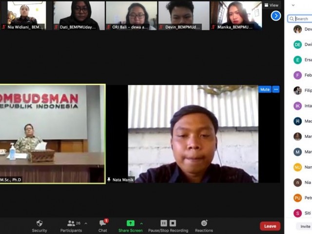 BEM PM Universitas Udayana Antusias Ikuti Kunjungan Belajar Daring Ombudsman RI