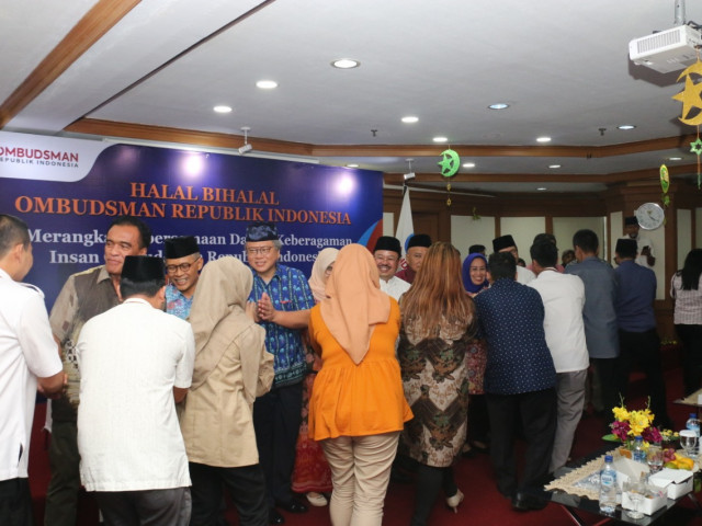 JAKARTA - Ombudsman Republik Indonesia menggelar acara halalbihalal bersama seluruh Insan Ombudsman dan tamu undangan di Ruang Ajudikasi lantai 6 Gedung Ombudsman, Kuningan Jakarta Selatan, Selasa (18/6).
