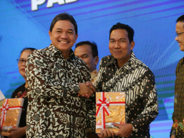 Jakarta - Sekretaris Jenderal Ombudsman RI Suganda Pandapotan Pasaribu menerima Laporan Hasil Pemeriksaan atas laporan keuangan Ombudsman RI tahun 2018 dengan predikat opini Wajar Tanpa Pengecualian (WTP) yang diserahkan secara simbolis oleh Anggota III Badan Pemeriksa Keuangan Achsanul Qosasi di Auditorium Lantai II, Kantor BPK , Jalan Gatot Subroto, Jakarta, pada Senin, (17/6)