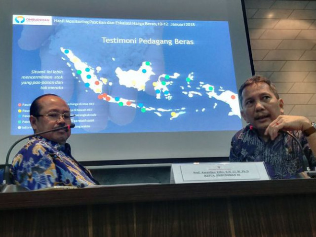 "Kami menyimpulkan bahwa persediaan beras kita pas-pasan, tidak merata, dan harga naik tajam sejak Desember," kata Anggota Ombudsman RI Ahmad Alamsyah Saragih, di Jakarta, Senin (15/1/2018).