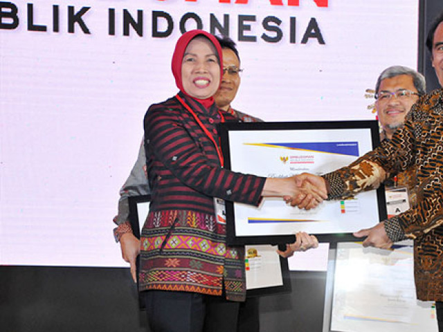 Penghargaan diterima Wakil Gubernur Sumatera Utara (Wagubsu) Nurhajizah Marpaung dari anggota Ombudsman RI Laode Ida dalam acara Penganugerahan Predikat Kepatuhan di Balai Kartini Jakarta, Selasa (5/12).