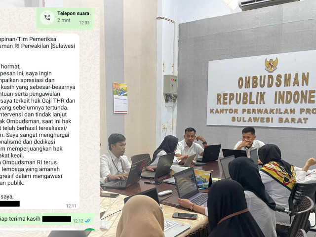 "Saya menyampaikan apresiasi dan terima kasih yang sebesar-besarnya kepada Ombudsman RI Perwakilan Sulawesi Barat atas bantuan serta pengawalan laporan saya terkait hak Gaji THR dan Gaji ke-13 yang sebelumnya tertunda. Berkat intervensi dan tindak lanjut dari pihak Ombudsman, saat ini hak tersebut telah berhasil direalisasikan. Saya sangat menghargai profesionalisme dan dedikasi tim dalam memperjuangkan hak masyarakat kecil," tulis pelapor melalui pesan WhatsApp.