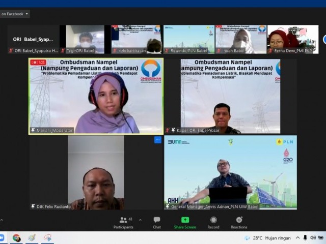 Pangkalpinang - Kegiatan "Ombudsman Nampel" yang diselenggarakan melalui daring pada Kamis (24/2/2022) dan mengundang para pemateri kompeten yang membahas problematika pemadaman listrik di Provinsi Kepulauan Bangka Belitung menjadi cukup menarik untuk disimak. Kegiatan tersebut mengupas  terkait alternatif solusi, pengaduan kompensasi, sampai dengan gugatan ganti rugi melalui class action memperkarakan pelayanan PT PLN apabila dirasa merugikan masyarakat.