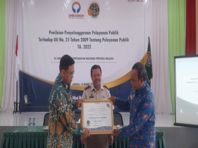 Penilaian ini disampaikan Ombudsman Perwakilan Provinsi Maluku kepada Kanwil ATR/BPN Provinsi Maluku bersama dengan sejumlah kantor Pertanahan kabupaten/kota, Selasa (14/3).