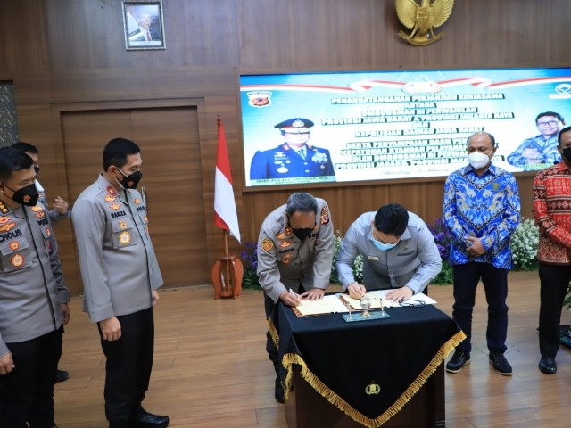 KIMCIPEDES.COM, BANDUNG | Kapolda Jabar Irjen Pol. Drs.Suntana M.Si melaksanakan penandatanganan perjanjian kerja sama dan penyampaian hasil penilaian Ombudsman tentang Keputusan standar pelayanan publik tahun 2021, Selasa (8/2/2022)
