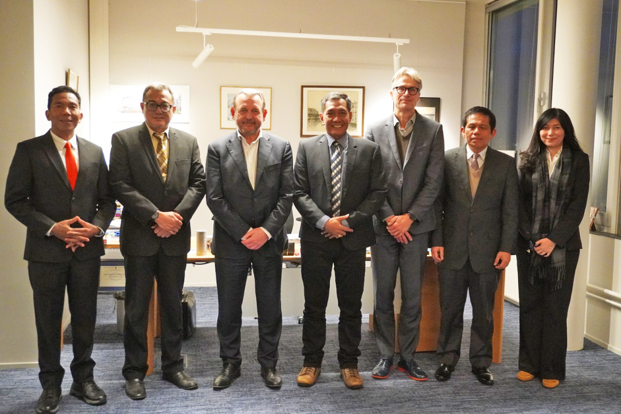 Anggota Ombudsman RI, Johanes Widijantoro, Indraza Marzuki Rais, Jemsly Hutabarat, didampingi oleh Sekretaris Jenderal, Suganda Pandapotan Pasaribu melakukan kunjungan kerja ke kantor Nationale Ombudsman di Den Haag, Belanda yang diterima oleh Ketua Nationale Ombudsman, Reinier van Zutphen dan Direktur Internasional Nationale Ombudsman, Stephan Sjouke, pada Rabu (17/12/2025).