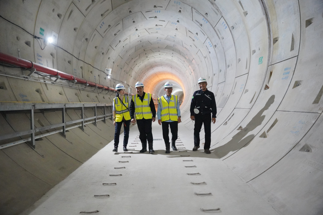 Ketua Ombudsman Republik Indonesia Mokhammad Najih bersama Wakil Ketua Ombudsman RI Bobby Hamzar Rafinus melakukan kunjungan lapangan ke lokasi pembangunan MRT CP 201 Monas, Kamis (5/2/2026) di Jakarta Pusat.