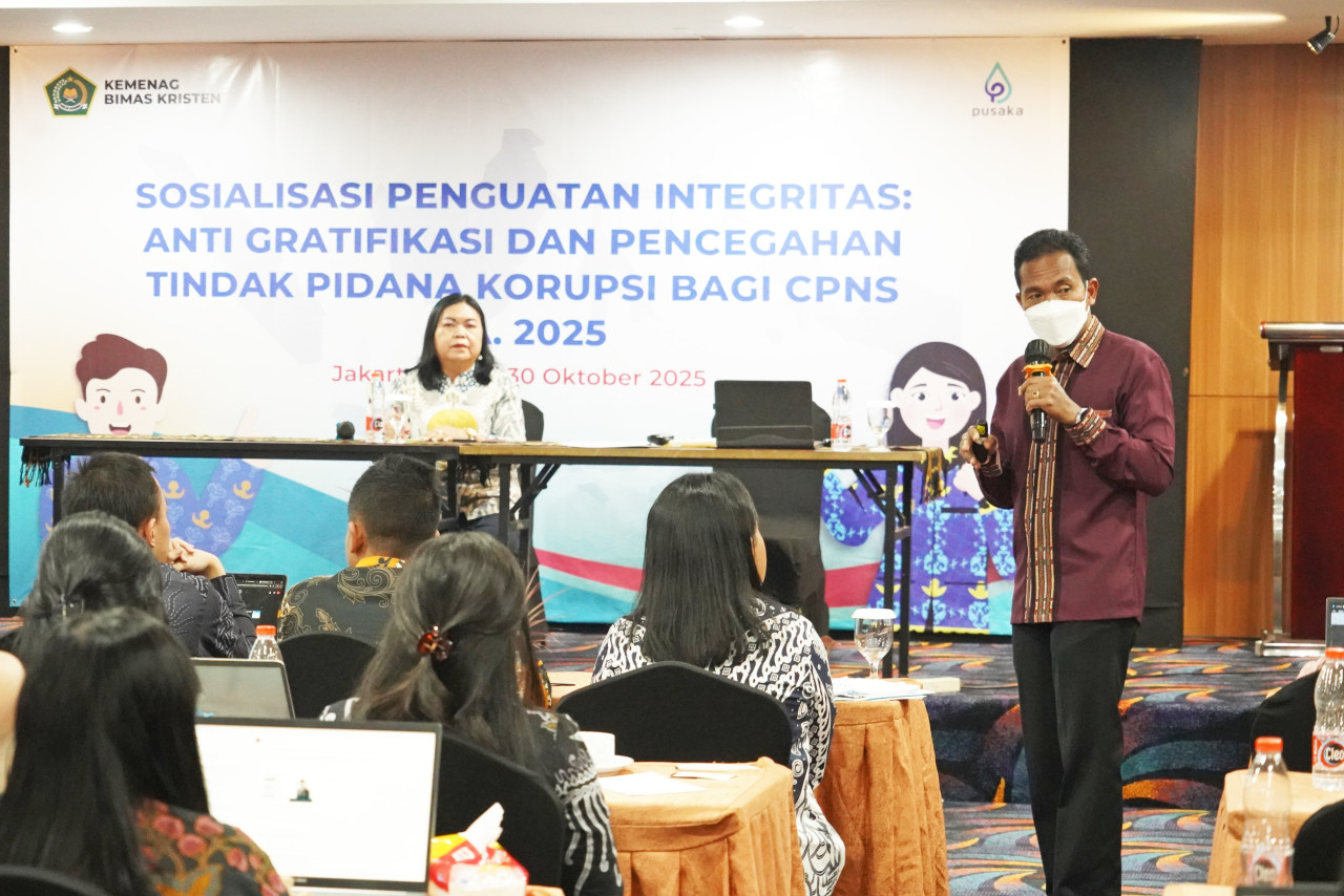 Sekretaris Jenderal Ombudsman RI, Suganda Pandapotan Pasaribu menjadi narasumber dalam kegiatan Sosialisasi Penguatan Integritas "Anti Gratifikasi dan Pencegahan Tindak Pidana Korupsi Bagi CPNS T.A 2025 di Jakarta" yang diselenggarakan oleh Dirjen Bimas Kristen Kementerian Agama, pada Rabu (29/10/2025) di Hotel Sotis Residence, Jakarta Pusat.